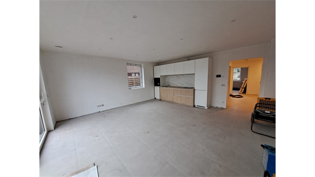 Een gelijkvloers en energie zuinig appartement aangepast aan rolstoelgebruik bestaande uit een woonkamer met open, ingerichte keuken, 2 slaapkamers, badkamer, wasplaats, terras, autostaanplaats. Er is een zij inkom voor dit appartement en het appartement heeft bredere binnendeuren. Het appartement is gelegen rechts vanuit de straatkant gezien.