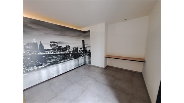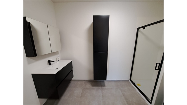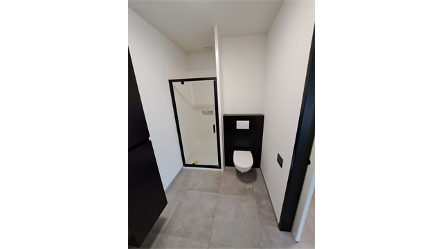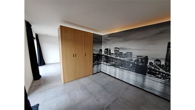 Een mooi afgewerkte en energiezuinige nieuwbouwstudio op de eerste verdieping bestaande uit een woonruimte met open, ingerichte keuken en ingemaakte kast, slaaphoek met ingemaakte kast, badkamer met douche en lavabo in meubel, terras. De studio is volledig opgeschilderd, voorzien van gordijnen en instapklaar. Deze studio is enkel te gebruiken als verblijfplaats, niet als hoofdverblijfplaats.