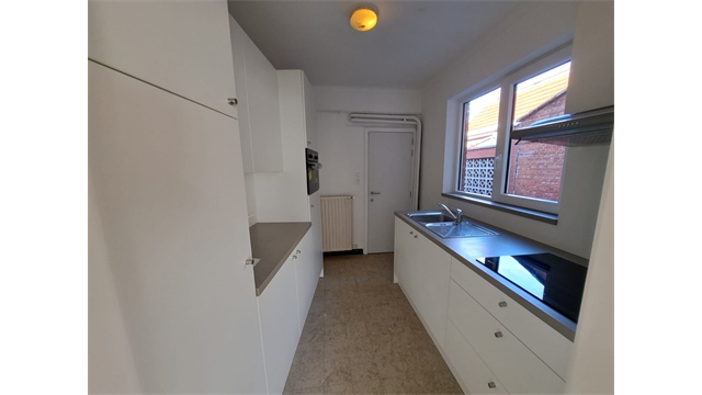Een gerenoveerde rijwoning bestaande op het gelijkvloers uit een woonkamer, ingerichte keuken, wasplaats, bergplaats, tuin. Op de eerste verdieping bevinden zich nog 2 slaapkamers, bureel en badkamer.