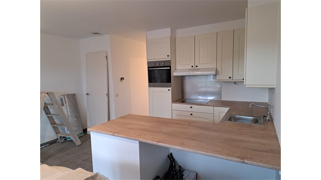 - voorzien van kookvuur, oven, vaatwasser, kastjes, vaatsteen, dampkap